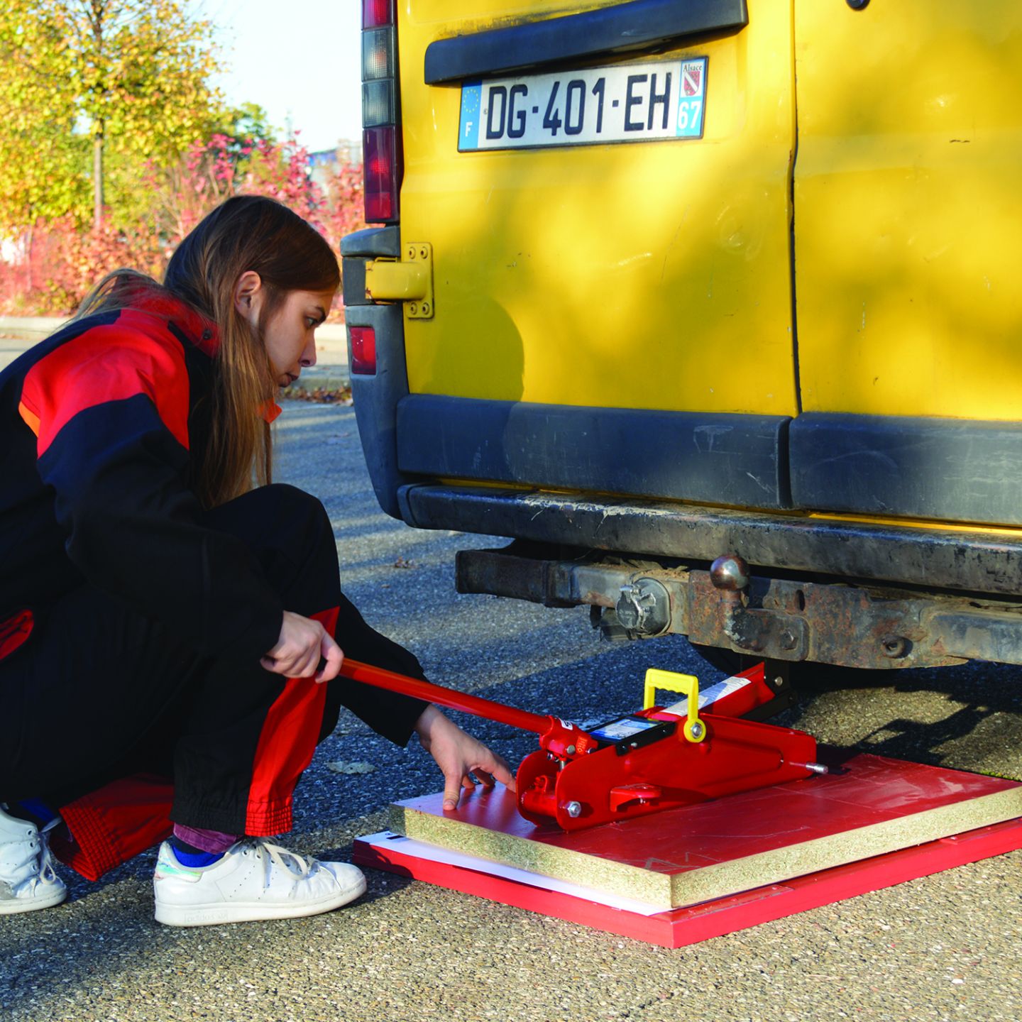 et des places de parking disponibles. Nous avons ensuite exploité les caractéristiques de la camionnette afin d’utiliser le poids de celle-ci comme « presse mécanique », fameuse invention de Johannes Gutenberg, dont la ville de Strasbourg fête l’anniversaire cette année (2018).