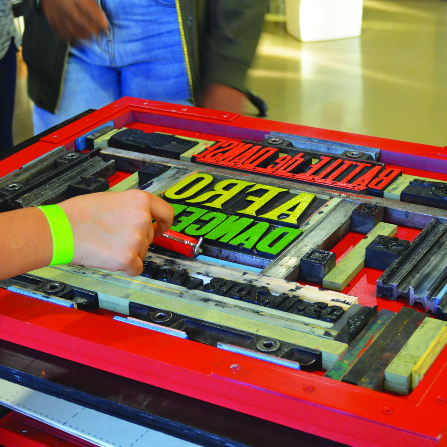 "L’imprimerie mobile que nous avons imaginée pendant cette résidence en est une. Comme de nombreux entrepreneurs du quartier, nous avons rapidement pris la décision d’installer notre atelier d’imprimerie typographique dans une camionnette, cette solution nous permettait non seulement d’avoir un atelier « pignon sur rue » mais aussi de pouvoir déplacer cet atelier de maille en maille, au gré des rencontres